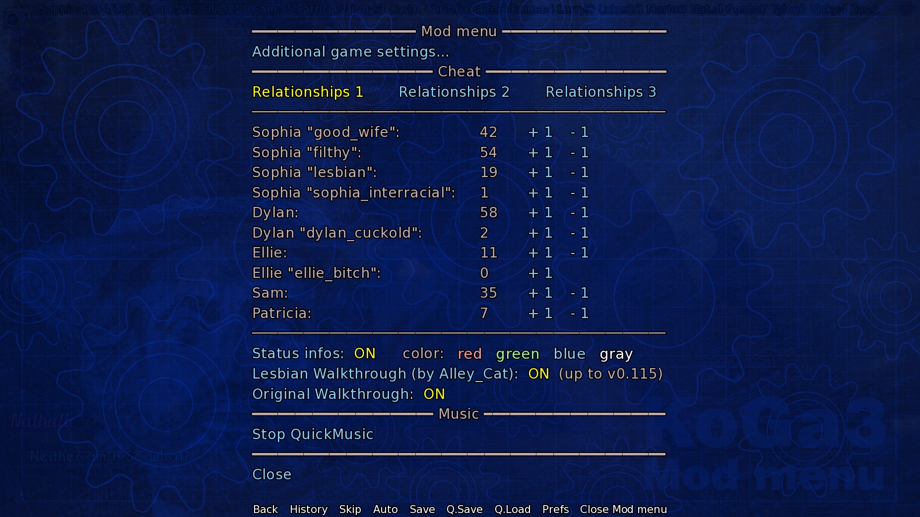 Mod functions: music/status/cheat/walkthrough/add.settings